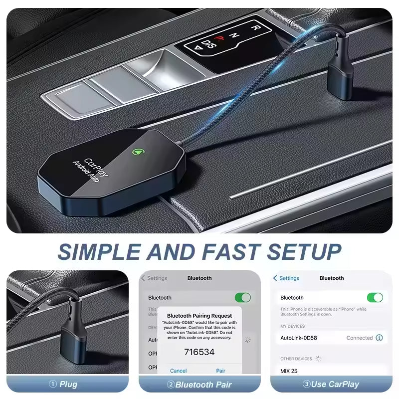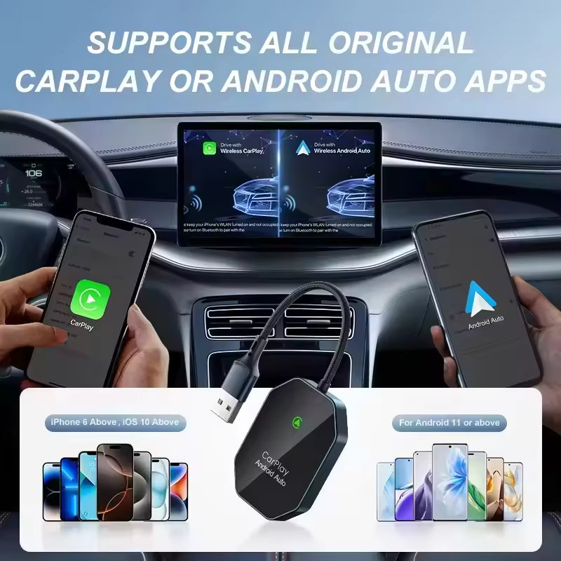 Wireless Android Auto Dongle Box for Car Radio with Wired CarPlay 2in1 Wireless CarPlay Adapter